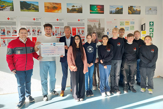 Symbolisch für das gesammelte Geld, das bereits beim Deutschen Roten Kreuz eingegangen ist, wurde nun der Check an den offiziellen Vertreter des Deutschen Roten Kreuzes, Matthias Ennenbach, übergeben. Von dem Geld werden vor allem Alltagsgegenstände wie Wärmedecken, Eimer und Wasserreinigungstabletten für sicheres Trinkwasser etc. in den Katastrophengebieten gestellt.