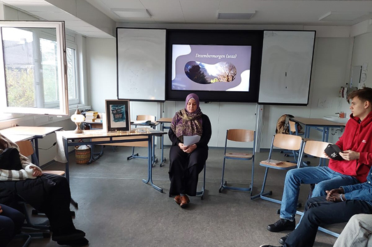 Wir danken Layla Kamil Abdulsalam herzlich dafür, dass sie unseren Schüler*innen immer wieder die Möglichkeit zum Mitdichten bietet und ihnen so neue Welten erschließt.