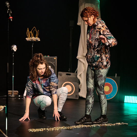 Anfang April besuchten wir mit dem ganzen Jahrgang 6 das Theaterstück „Robin und die Hoods“ im Theater Marabu. Es wurde im Rahmen des Kooperationsprojekts „Theaternetzwerk für junge Menschen“ von der Performancegruppe pulk fiktion aus Köln gespielt. Gut vorbereitet durch einen Theaterworkshop konnten die Schüler*innen sich interaktiv mit der Frage auseinandersetzen, wem eigentlich aus welchen Gründen wie viel von etwas zusteht. Wer trifft die Entscheidung darüber? Ist diese gerecht? Und was ist möglich, wenn eine große Unzufriedenheit damit herrscht? Welche Waffen sind erlaubt, welche verbietet die Moral oder das Gesetz? Grundlage des Stückes war die bekannte Vorlage „König der Diebe. Robin Hood“, die hier mit Elektropopmusik hinterlegt und durch pantomimische Einlagen, kleine Choreographien und Playback zu eingespielten akustischen Robin Hood- Filmdokumenten in unsere Zeit transportiert wurde. Die Interaktion mit unseren Schüler*innen zeigte, wie wichtig die großen Fragen der Verteilungs-Gerechtigkeit auch ffür Kinder und Jugendliche sind und wie viele kreative Ideen sie dazu haben.